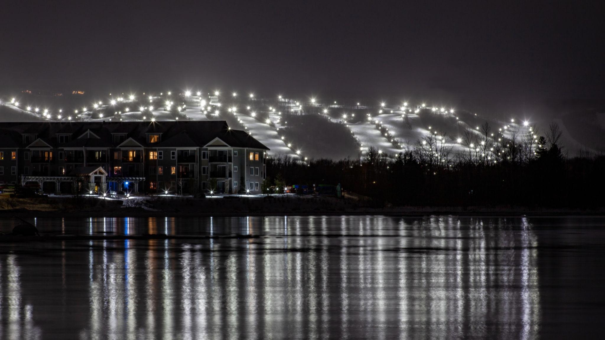 Blue Mountain is Ontario’s largest and most popular ski resort, located along the scenic Niagara Escarpment. Known for its lively pedestrian village, varied terrain, and strong snowmaking, it’s a go-to winter destination for Toronto-area riders. The mix of beginner-friendly runs, terrain parks, and night skiing makes it ideal for social ski trips and weekend getaways.